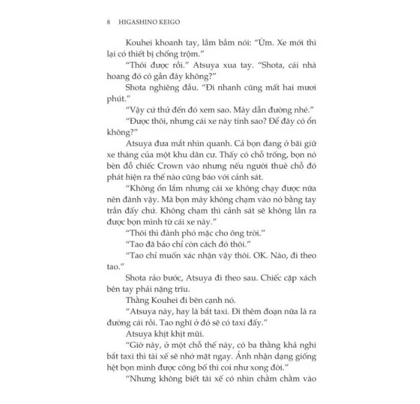 Tài kể chuyện hơn người đã giúp Keigo khéo léo thay đổi các mốc dấu thời gian và không gian, chắp nối những câu chuyện tưởng chừng hoàn toàn riêng rẽ thành một kết cấu chặt chẽ, gây bất ngờ từ đầu tới cuối.