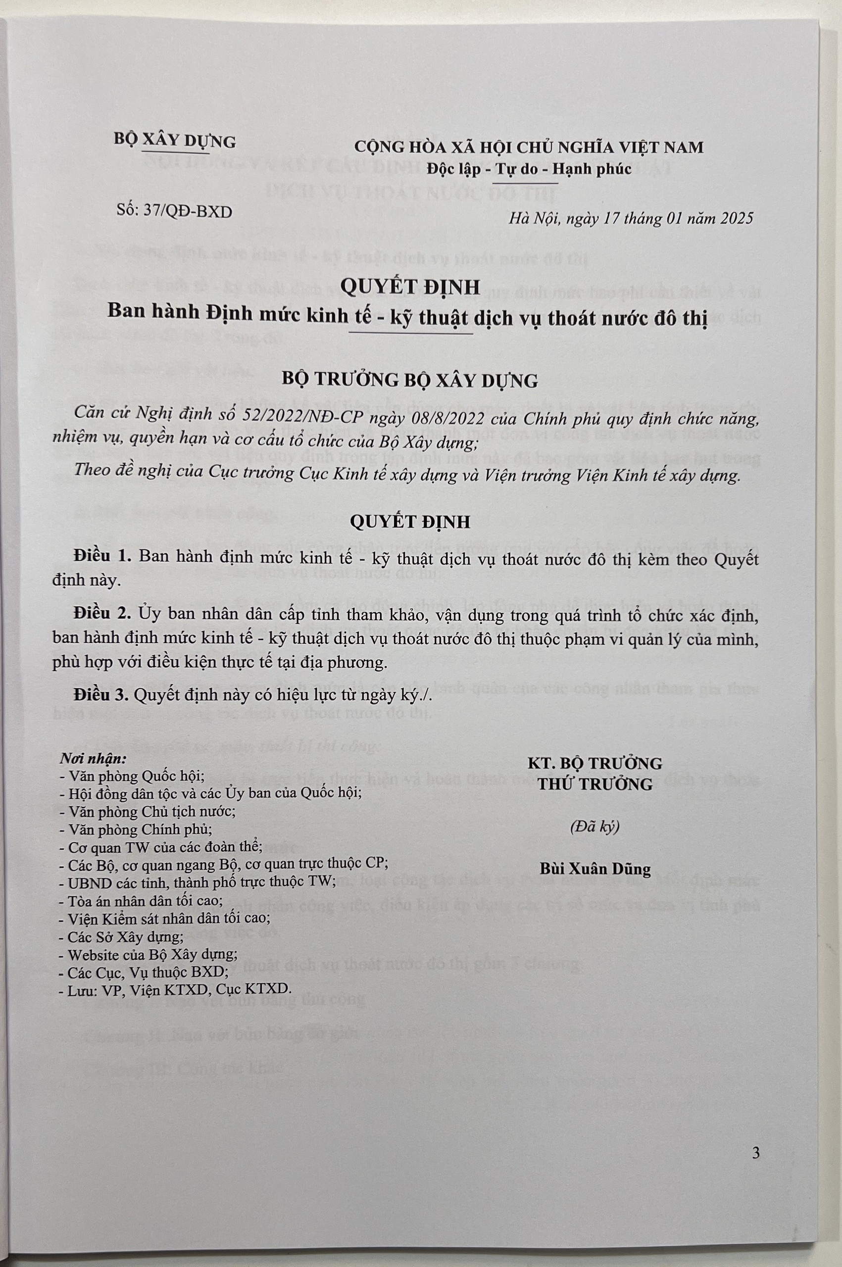 Điều 1. Ban hành định mức kinh tế - kỹ thuật dịch vụ thoát nước đô thị kèm theo Quyết định này.