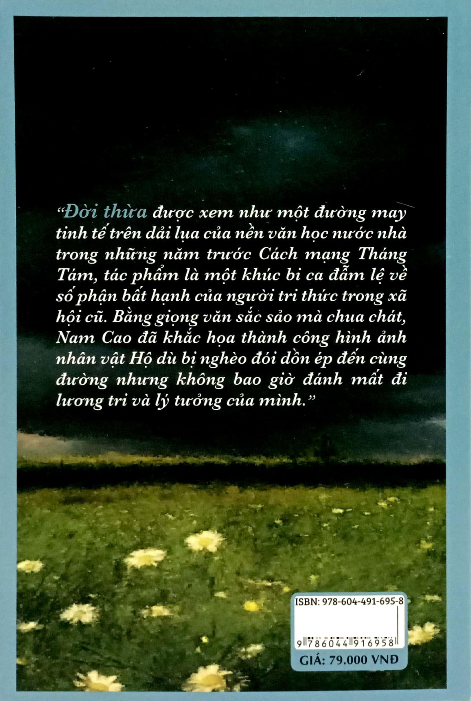 Mua tại TiktokĐời Thừa Khám Phá Bản Chất Con Người Qua "Đời Thừa" của Nam Cao Đời Thừa– tác phẩm nổi bật của Nam Cao, mang đến một cái nhìn sâu sắc về cuộc sống và những xung đột nội tâm của con người trong xã hội. Với bút pháp tinh tế và quan sát sắc sảo, Nam Cao mở ra một thế giới đầy suy tư và cảm xúc. Nội dung hấp dẫn: "Đời Thừa" không chỉ là câu chuyện về cuộc sống của một trí thức, mà còn là một nghiên cứu tinh tế về sự đối lập giữa lý tưởng và thực tại. Tác phẩm phản ánh sự đấu tranh nội tâm, sự thất vọng, và cảm giác vô nghĩa của nhân vật khi đứng trước những lựa chọn khó khăn trong cuộc đời. Nam Cao đã khéo léo xây dựng những tình huống và nhân vật để khám phá sâu sắc các chủ đề về sự tồn tại và giá trị cuộc sống. Vì sao bạn không thể bỏ qua: