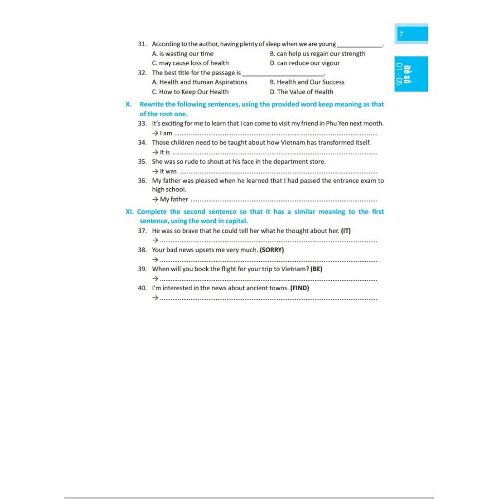 Đột phá tiếng Anh 9+ , Đề thi tuyển sinh vào lớp 10 – Có đáp án