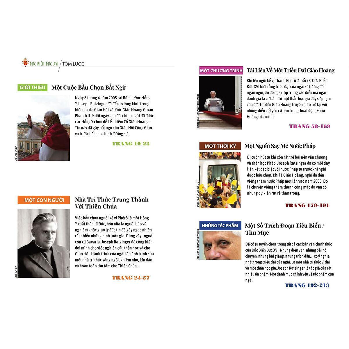 - Một Số Trích Đoạn Tiêu Biểu / Thư MụcĐã có sự tuyển chọn trong tất cả các bản văn chính thức của Đức Bênêđictô XVI. Những diễn văn, những bài nói chuyện, những bài giảng, những trích dẫn,… có ý nghĩa nhất của triều đại ngài. Là một nhà trí thức vĩ đại và mộtthần học gia, Joseph Ratzinger là tác giả của rất nhiều ấn phẩm. Một danh mục chính yếu về tác phẩm của ngài. Tác giả:Pelerin. Chuyển ngữ:Nt. Quỳnh Giao. Kích thước:14×20.5 cm Loại bìa:Bìa mềm Số trang:228 trang in màu.