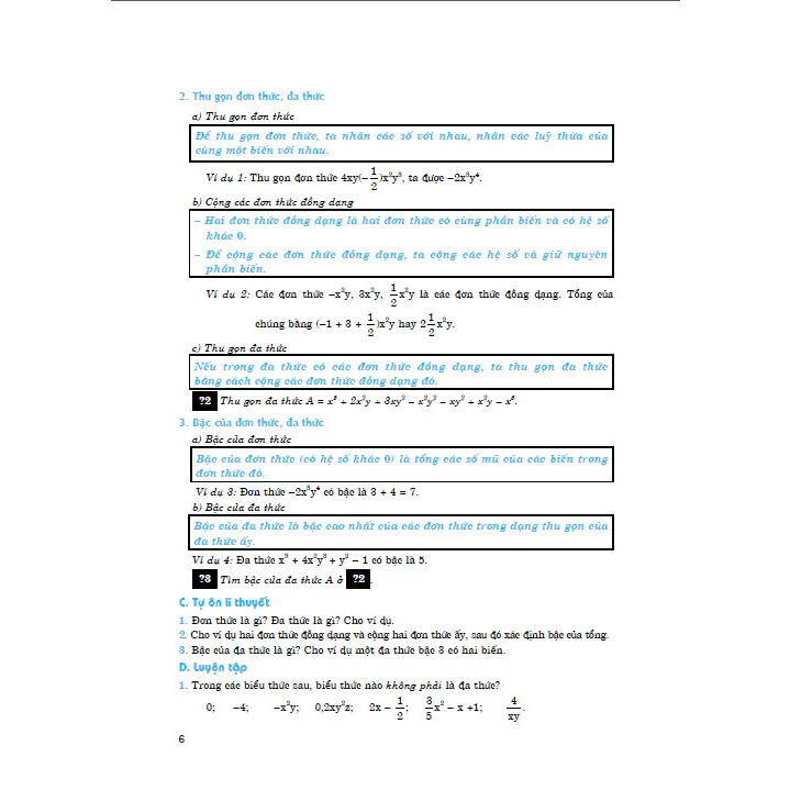 Mục Luyện tập dành cho các em tự làm để củng cố và hoàn thiện các kiến thức, kĩ năng vừa tiếp nhận. Các bài tập được đánh số liên tục ở mỗi chương. Các em cần làm hết các bài tập này vì chúng là những bài tập cơ bản nhất.