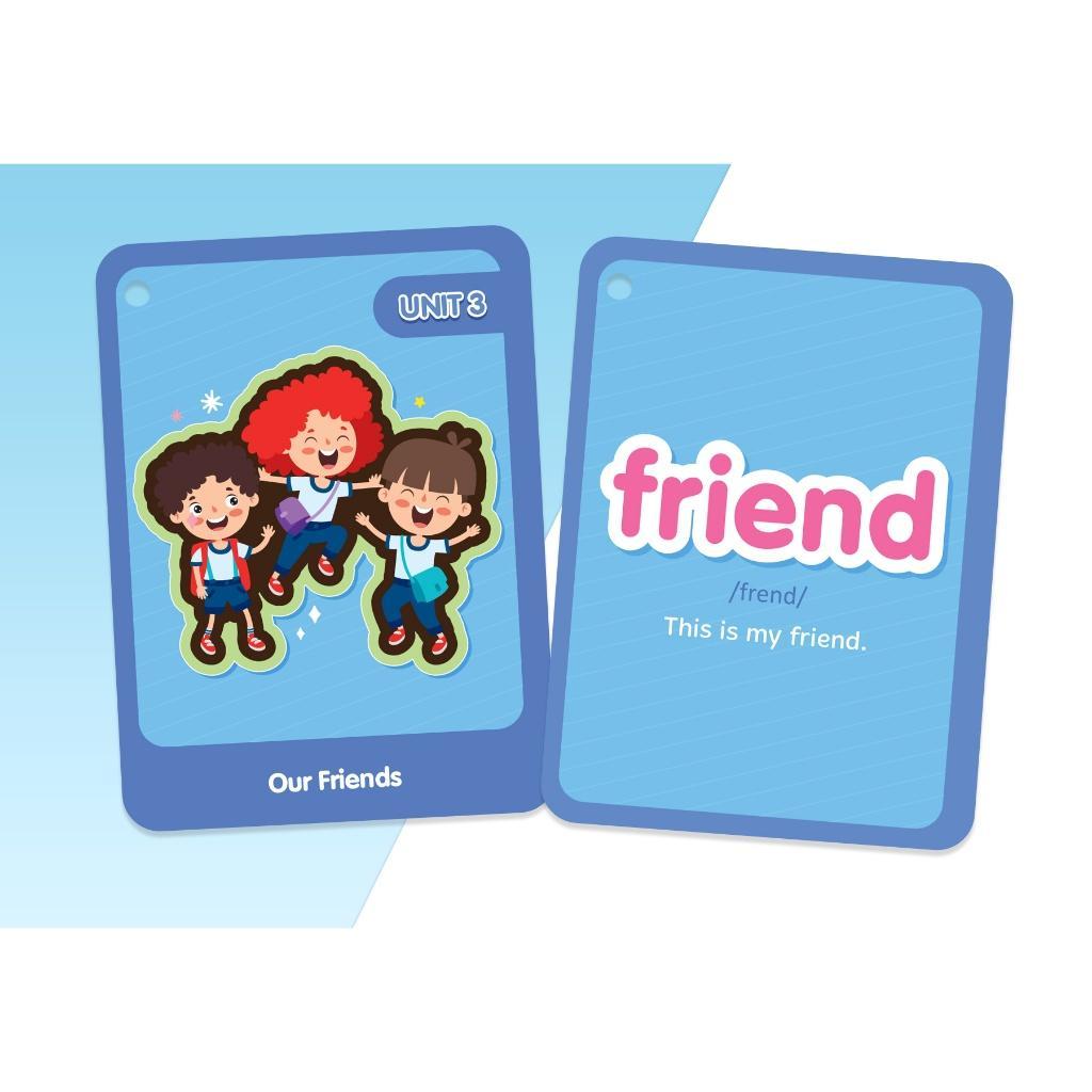 Mỗi thẻ flashcard đi kèm với hình ảnh sinh động và đáng yêu, giúp trực quan hóa từ vựng và giữ sự hứng thú của các em. Những hình ảnh này không chỉ giúp ghi nhớ từ vựng mà còn kích thích trí tưởng tượng và sáng tạo của các em nhỏ.