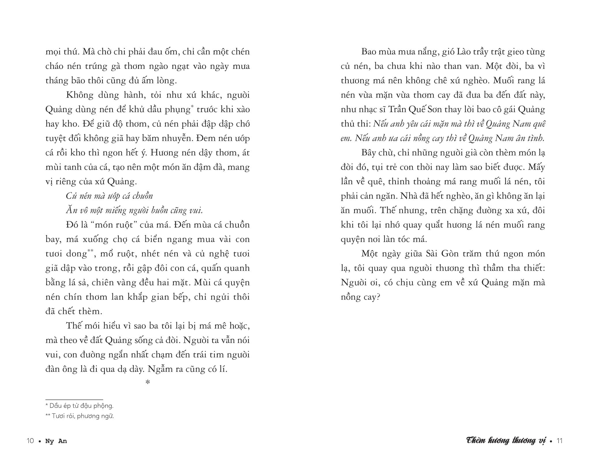 “Tập tản văn Gánh nhớ ngang trời như gánh cả xứ Quảng đi vào lòng người đọc bằng sự len lỏi dịu dàng của ngôn từ và chất văn rất riêng biệt của Ny An.” – Nhà văn Tống Phước Bảo.