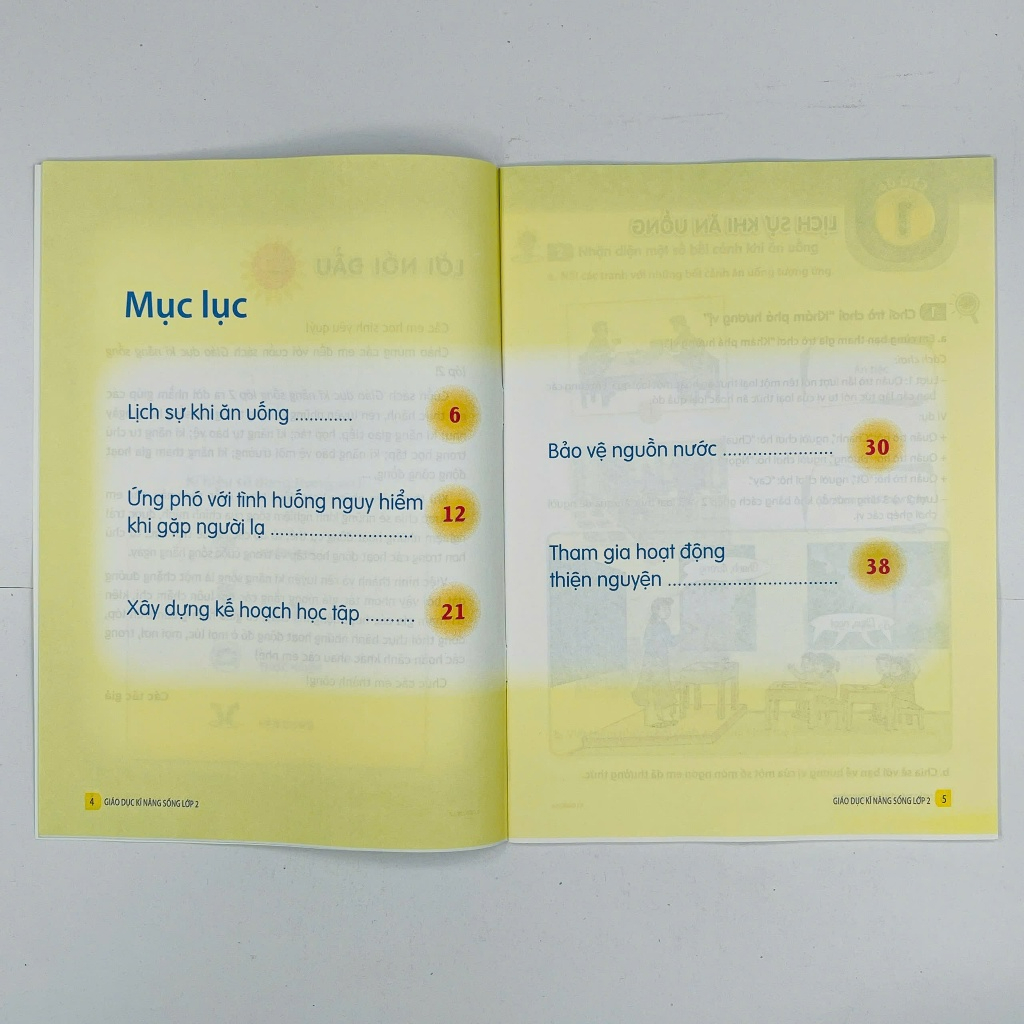 Cuốn sách "Giáo Dục Kĩ Năng Sống Lớp 2" được biên soạn với mục tiêu giúp các em học sinh rèn luyện, thực hành và phát triển các kỹ năng cần thiết trong cuộc sống hằng ngày. Nội dung sách được thiết kế phù hợp với lứa tuổi, bám sát các tình huống thực tế mà trẻ thường gặp, từ đó hướng dẫn các em cách ứng xử, giao tiếp, hợp tác, tự lập và giải quyết vấn đề một cách hiệu quả.