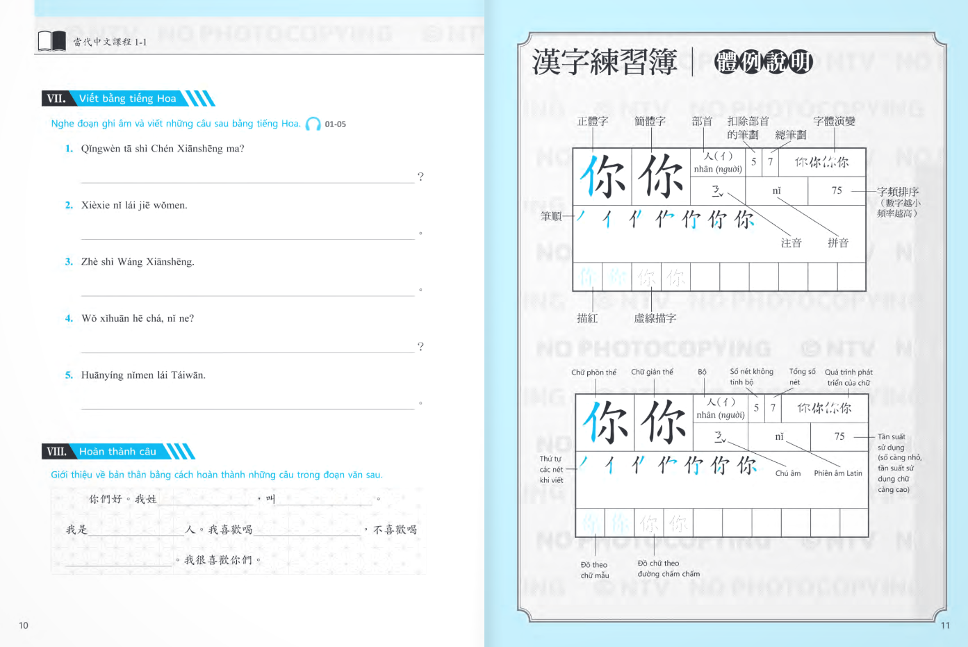 Giáo Trình Tiếng Hoa Đương Đại - Sách Bài Tập + Sách Tập Viết 1-1 Bộ sách dành cho học sinh đến Đài Loan học tiếng Hoa và cũng là giáo trình phù hợp với