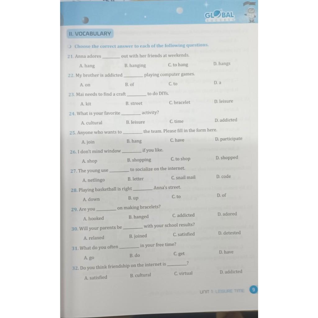 GLOBAL SUCCESS - Bài tập trắc nghiệm tiếng anh lớp 8 tập 1 (có đáp án)