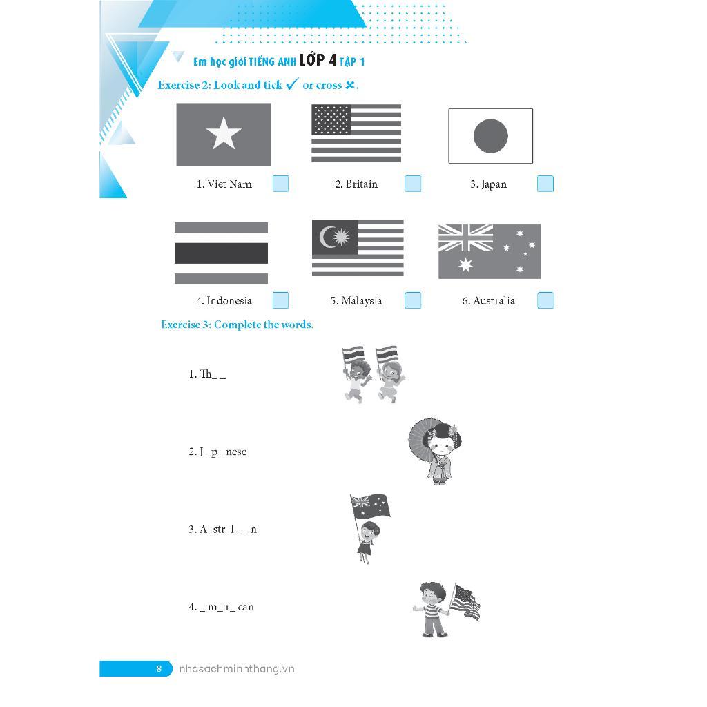 Mua tại TiktokBộ sách “Em học giỏi tiếng Anh lớp 4 tập 1 và tập 2” được biên soạn theo khung giáo trình tiếng Anh đang được giảng dạy trong các trường Tiểu học trên toàn quốc.