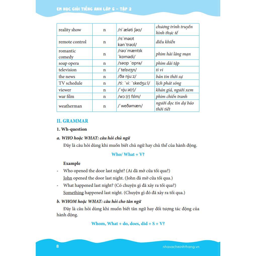 Bộ sách “Em học giỏi tiếng Anh lớp 6 tập 1 và tập 2” được biên soạn theo khung giáo trình tiếng Anh đang được giảng dạy trong các trường Tiểu học trên toàn quốc.