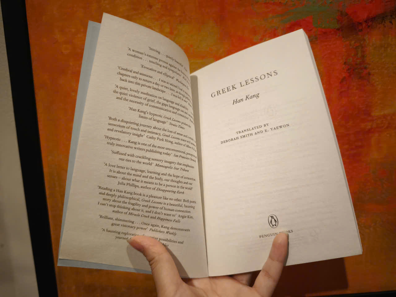 Greek Lessons là một bức thư tình dịu dàng gửi đến sự kết nối của con người, một cuốn tiểu thuyết đánh thức các giác quan, gợi lên một cách sống động bản chất của ý nghĩa của việc sống.
