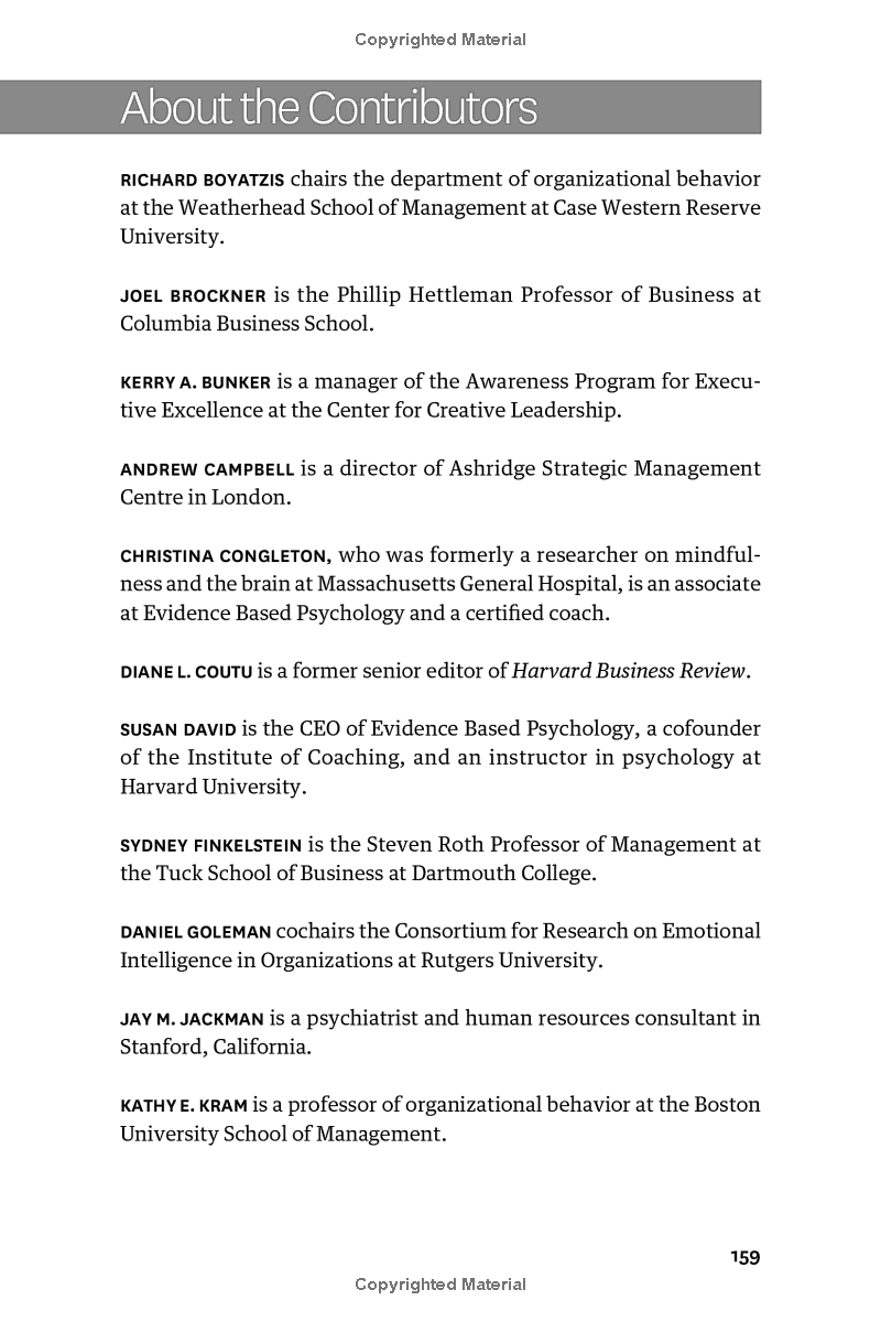 In his defining work on emotional intelligence, bestselling author Daniel Goleman found that it is twice as important as other competencies in determining outstanding leadership. If you read nothing else on emotional intelligence, read these 10 articles by experts in the field. We've combed through hundreds of articles in the Harvard Business Review archive and selected the most important ones to help you boost your emotional skills - and your professional success. This book will inspire you to: Monitor and channel your moods and emotions Make smart, empathetic people decisions Manage conflict and regulate emotions within your team React to tough situations with resilience Better understand your strengths, weaknesses, needs, values, and goals Develop emotional agility This collection of articles includes: "What Makes a Leader" by Daniel Goleman, "Primal Leadership: The Hidden Driver of Great Performance" by Daniel Goleman, Richard Boyatzis, and Annie McKee, "Why It's So Hard to Be Fair" by Joel Brockner, "Why Good Leaders Make Bad Decisions" by Andrew Campbell, Jo Whitehead, and Sydney Finkelstein, "Building the Emotional Intelligence of Groups" by Vanessa Urch Druskat and Steve B. Wolff, "The Price of Incivility: Lack of Respect Hurts Morale - and the Bottom Line" by Christine Porath and Christine Pearson, "How Resilience Works" by Diane Coutu, "Emotional Agility: How Effective Leaders Manage Their Negative Thoughts and Feelings" by Susan David and Christina Congleton, "Fear of Feedback" by Jay M. Jackman and Myra H. Strober, and "The Young and the Clueless" by Kerry A. Bunker, Kathy E. Kram, and Sharon Ting .