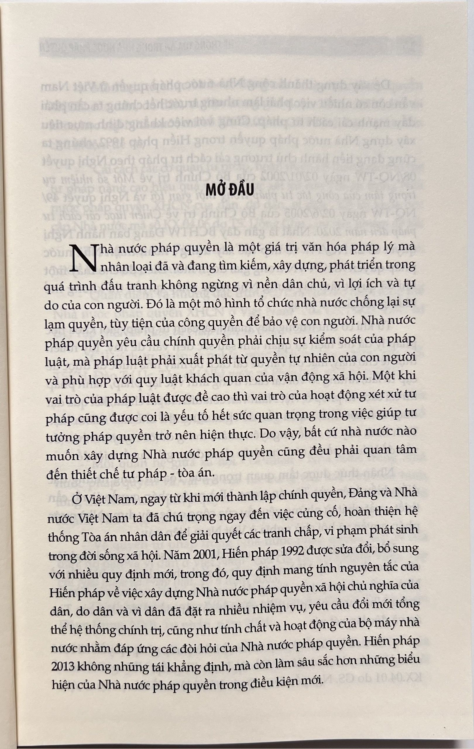 Nhà nước pháp quyền là một giá trị văn hóa pháp lý mà nhân loại đã và đang tìm kiếm, xây dựng, phát triển trong quá trình đấu tranh không ngừng vì nền dân chủ, vì lợi ích và tự do của con người. Đó là một mô hình tổ chức nhà nước chống lại sự lạm quyền, tùy tiện của công quyền để bảo vệ con người. Nhà nước pháp quyền yêu cầu chính quyền phải chịu sự kiểm soát của pháp luật, mà pháp luật phải xuất phát từ quyền tự nhiên của con người và phù hợp với quy luật khách quan của vận động xã hội. Một khi vai trò của pháp luật được đề cao thì vai trò của hoạt động xét xử tư pháp cũng được coi là yếu tố hết sức quan trọng trong việc giúp tư tưởng pháp quyền trở nên hiện thực. Do vậy, bất cứ nhà nước nào muốn xây dựng Nhà nước pháp quyền cũng đều phải quan tâm đến thiết chế tư pháp - tòa án.