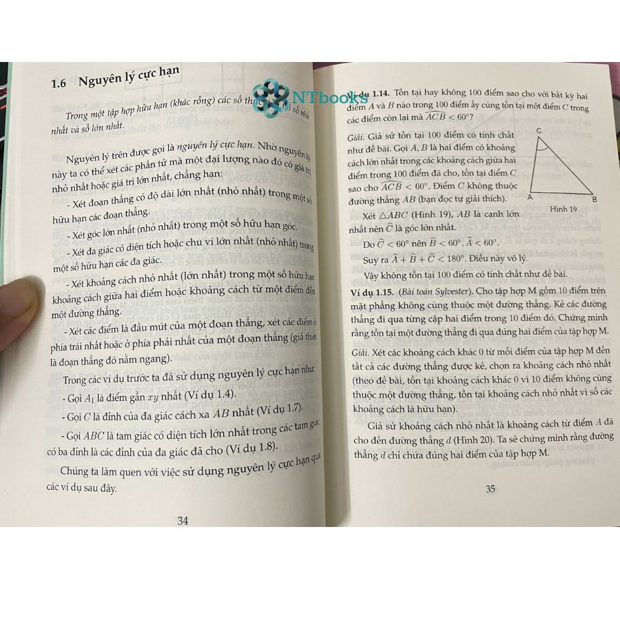 Hình học tổ hợp cũng rất phong phú về phương pháp giải. Cuốn sách giỏi thiệu vói bạn đọc các phương pháp giải toán Hình học tổ hợp, từ những phương pháp quen thuộc nhất như Phương pháp phản chứng, nguyên lý Dirichlet, Quy nạp toán học, nguyên lý cực hạn cho đến những phương pháp ít gặp hơn như Tạo đa giác bao, Tạo các dải song song, Chia nhỏ hình, Phương pháp tô màu,