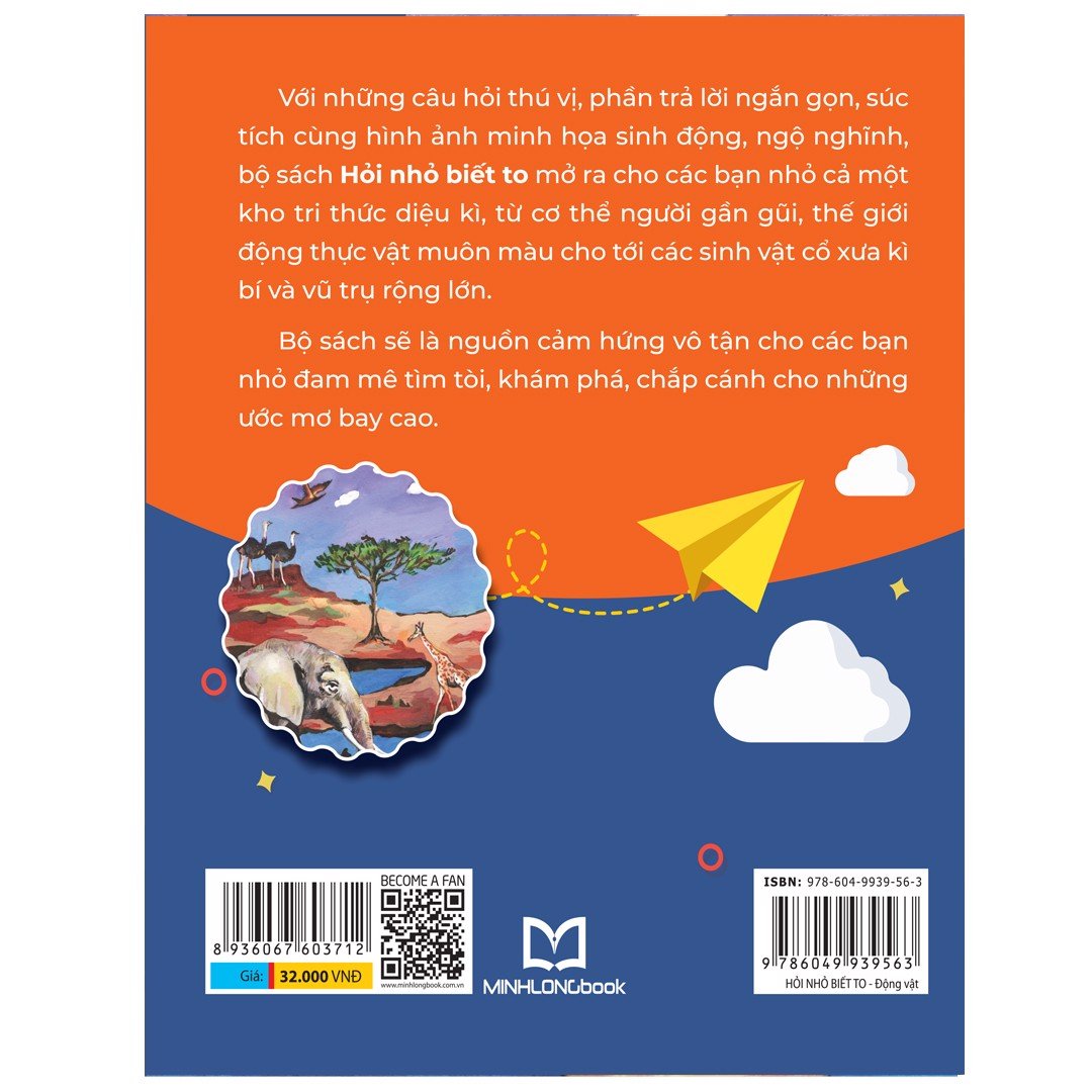 Với những câu hỏi thú vị về thế giới động vật, phần trả lời ngắn ngon, súc tích cùng hình ảnh minh họa sinh động, ngộ nghĩnh, bộ sách Hỏi nhỏ biết to cơ thể người mở ra cho các bạn nhỏ cả một kho tri thức diệu kì và thú vị về thế giới động vật rộng lớn từ cách loài ở dưới biển, trên cạn, bay trên bầu trời, loài bò sát,
