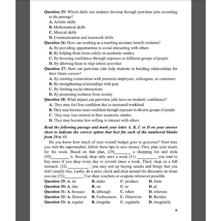 ĐỀ TỔNG ÔN QUẢNG CÁO/ TỜ RƠI/ ĐỌC ĐIỀN 5 CÂU 2025