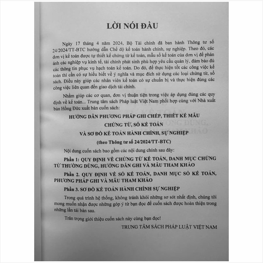 Sách Hướng Dẫn Phương Pháp Ghi Chép, Thiết Kế Mẫu Chứng Từ, Sổ Kế Toán Và Sơ Đồ Kế Toán Hành Chính, Sự Nghiệp theo Thông tư 24/2024/TT-BTC