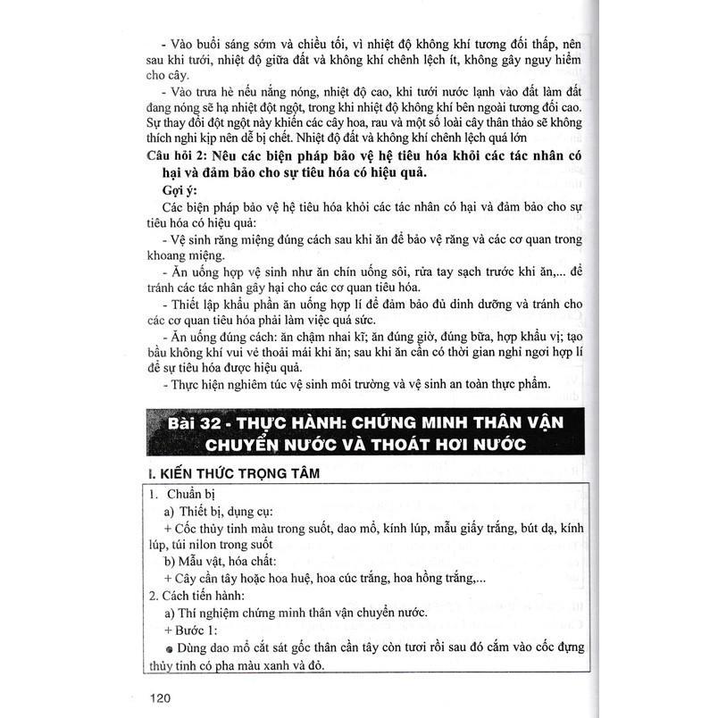 Nội dung của cuốn sách sẽ hệ thống lại kiến thức trọng tâm để học sinh cần ghi nhớ những kiến thức cốt lõi của từng bài học, tiếp đó sẽ hướng dẫn hoặc gợi ý các em trả lời các câu hỏi của bài học, câu hỏi ở phần hoạt động hay câu hỏi trong bài thực hành,... Ngoài ra để phát huy khả năng tư duy, sáng tạo của học sinh, nhóm tác giả đưa thêm các câu hỏi phát triển năng lực nhằm kết nối kiến thức đã được học với thực tiễn trong đời sống, đặc biệt là bồi dưỡng tính hứng thú học tập cho học sinh.