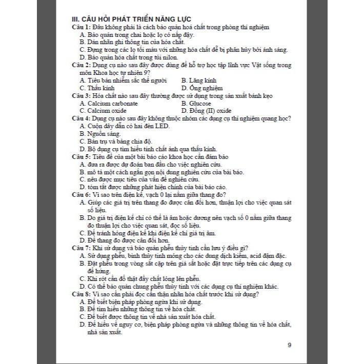 HƯỚNG DẪN TRẢ LỜI CÂU HỎI VÀ BÀI TẬP KHOA HỌC TỰ NHIÊN 9 (Dùng kèm SGK Chân trời sáng tạo).