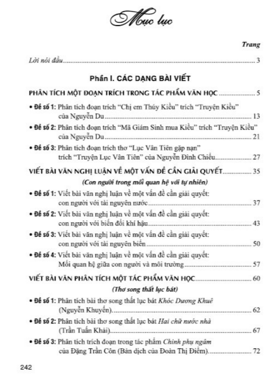 - Phần đề minh họa: các dàn ý và bài tham khảo (gợi ý dàn bài và bài văn hoàn chỉnh) hướng dẫn học sinh kĩ năng viết, nói – nghe. Cuốn sách là tâm huyết của nhóm tác giả đã nghiên cứu, trăn trở trong một thời gian dài. Tuy nhiên, do giới hạn về dung lượng và thời gian nên không thể chuyển tải hết được các ý tưởng. Vì vậy, khi sử dụng quý thầy cô và các em học sinh cần linh hoạt, sáng tạo để phù hợp với từng đối tượng và mức độ nhận thức của học sinh. Để sử dụng hiệu quả cuốn sách này, thầy cô và các em nên kết hợp chặt chẽ với sách giáo khoa. Trong quá trình biên soạn, cuốn sách không tránh khỏi những thiếu sót nhất định. Nhóm tác giả rất mong nhận được ý kiến đóng góp chân thành từ các bạn đọc gần xa đặc biệt là các quý thầy cô cùng các em học sinh thân yêu để cuốn sách được hoàn thiện hơn trong lần tái bản sau.