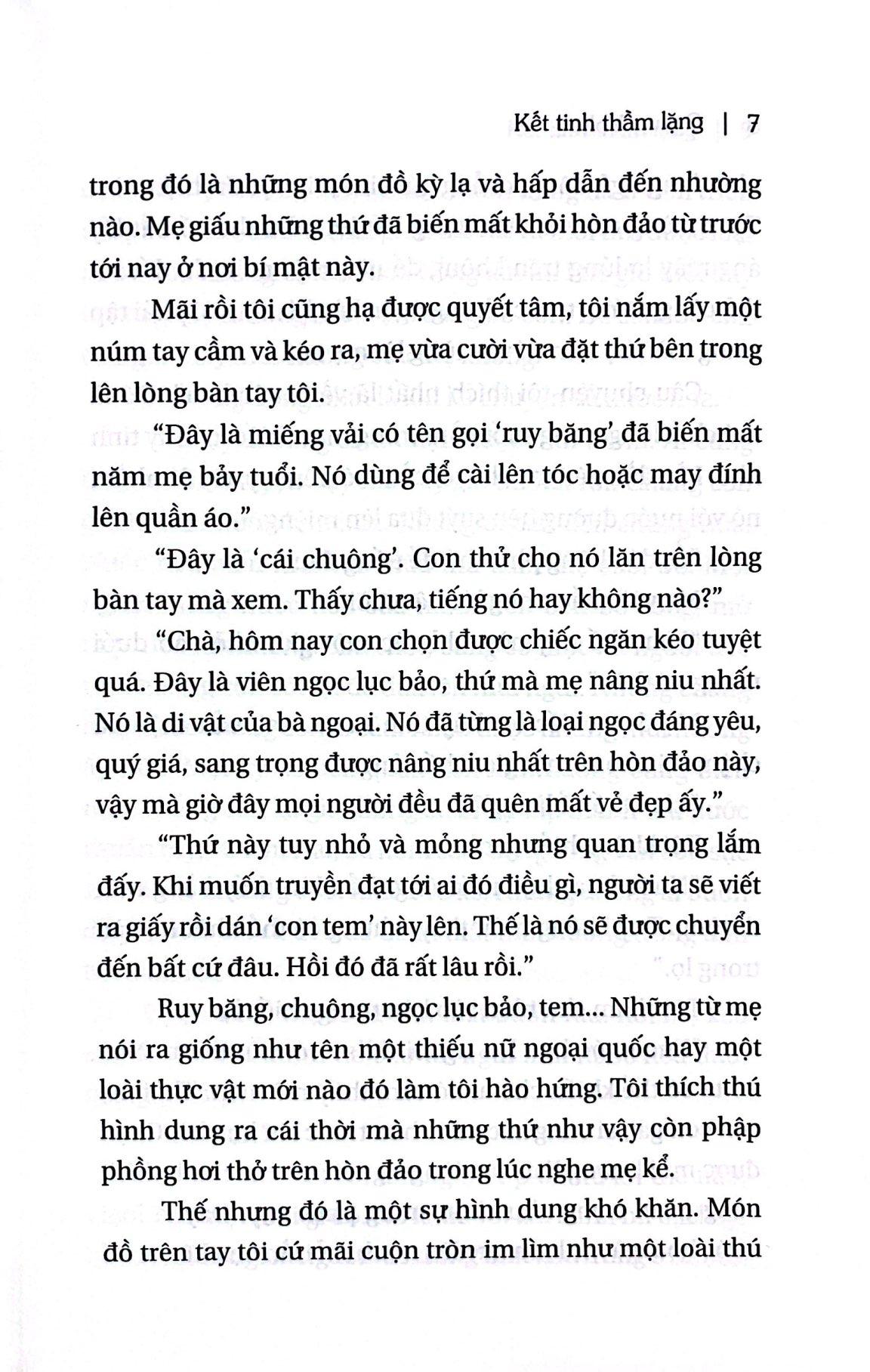 Kết tinh thầm lặng, một kiệt tác văn học khắc họa tài tình nỗi đau mất mát, buộc con người tự vấn về bản chất của sự tồn tại, về bản sắc và về tầm quan trọng của ký ức.