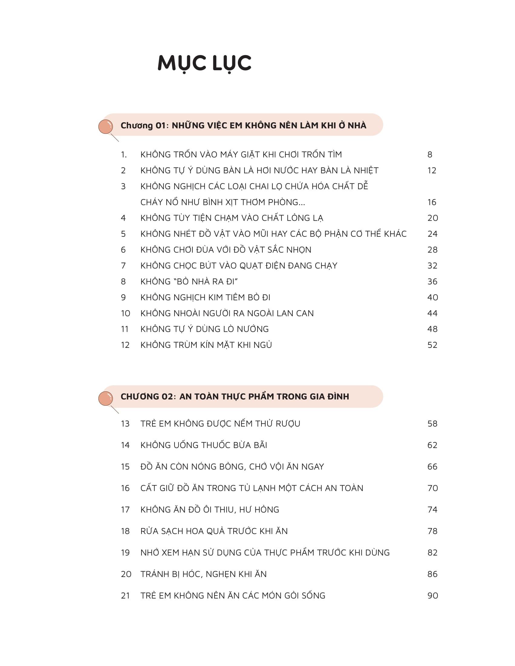 Chương 3: Đi sâu vào kiến thức và kĩ năng an toàn khi ở nhà mà trẻ cần có. Từ chương này trở đi, cuốn sách bước vào phần nâng cao ý thức an toàn cho trẻ.