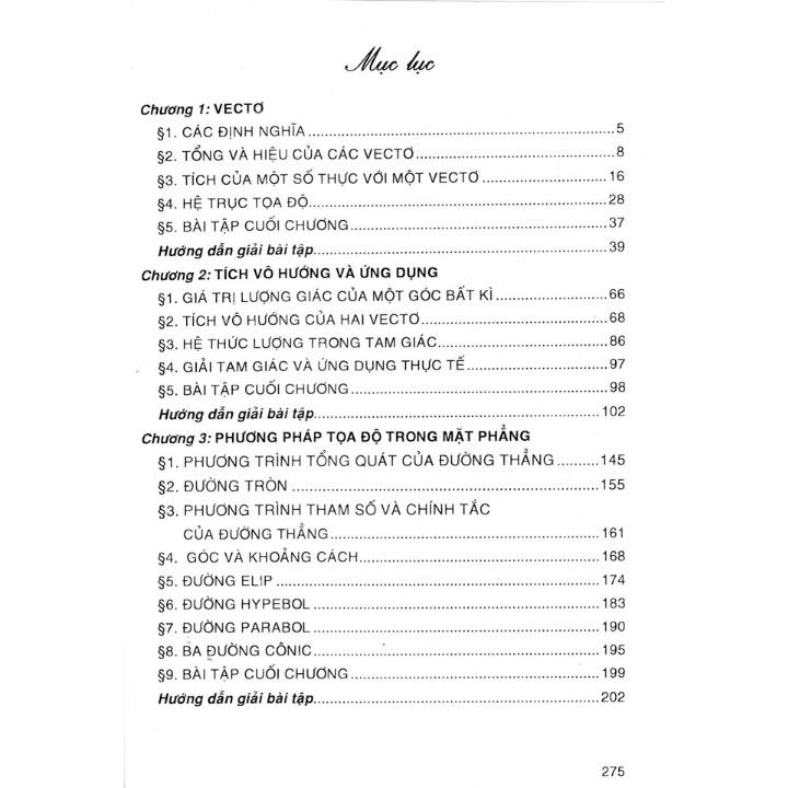 Chương I: Vectơ. Chương II: Tích vô hướng và ứng dụng.