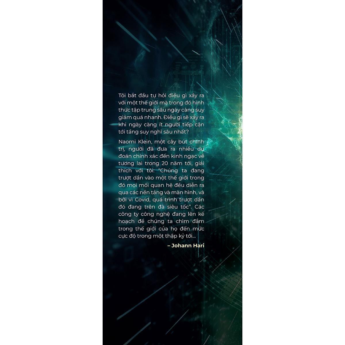 Xuyên suốt cuốn sách Stolen Focus: Why You Can’t Pay Attention - and How to Think Deeply Again này, bạn sẽ học cách thực hiện giảm thiểu những vấn đề về khả năng tập trung, tác giả đã gom góp hơn 250 công trình nghiên cứu khoa học về sự tập trung khi viết ra quyển sách này.