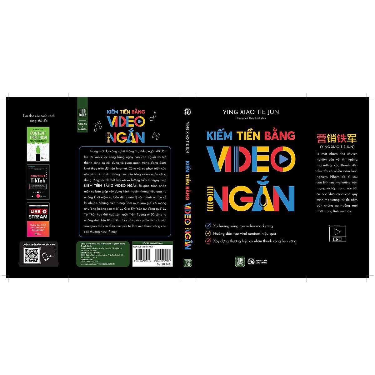 Trong thời đại công nghệ thông tin, video ngắn đã dần len lỏi vào cuộc sống hàng ngày của con người và trở thành công cụ nội dung vô cùng quan trọng đang được khai thác triệt để trên Internet. Cùng với sự phát triển của nền kinh tế truyền thông, các nền tảng video ngắn cũng đang tăng tốc để bắt kịp với xu hướng tiếp thị ngày nay. “Kiếm tiền bằng video ngắn” thông tin chi tiết các ưu điểm và phương pháp hoạt động của marketing bằng video ngắn, là giáo trình nhập môn cơ bản giúp xây dựng kênh truyền thông hiệu quả, bắt đầu từ những khái niệm về video marketing, lập kế hoạch và sản xuất nội dung, đến quản lý vận hành và kiếm lợi nhuận. Bên cạnh đó, những hiện tượng “làm mưa làm gió” khắp các trang mạng xã hội như ‘ông hoàng son môi’ Lý Giai Kỳ, ‘tiên nữ đồng quê’ Lý Tử Thất hay đội ngũ sản xuất Trần Tường 6h30 cũng là những đại diện tiêu biểu được đưa vào phân tích chuyên sâu, nhằm chỉ ra các yếu tố làm nên thành công của các thương hiệu IP này.