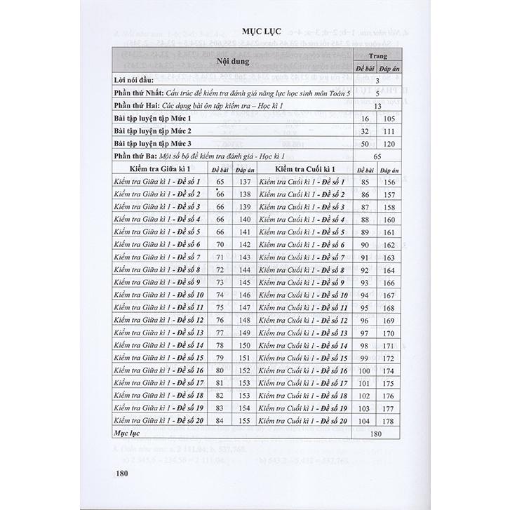 Để giúp giáo viên cũng như các bậc phụ huynh có thêm tài liệu hướng dẫn các em lớp 5 ôn tập trước khi kiểm tra định kì cuối kì và giữa kì, chúng tôi xin giới thiệu cuốn “Kiểm tra, đánh giá năng lực học sinh lớp 5 môn Toán”. Cuốn sách sẽ giúp các em ôn tập một cách hiệu quả, đồng thời giúp giáo viên và các bậc phụ huynh đánh giá đúng năng lực của học sinh, từ đó giúp các em điều chỉnh cách học để đạt hiệu quả cao nhất. Cuốn sách gồm 5 phần.