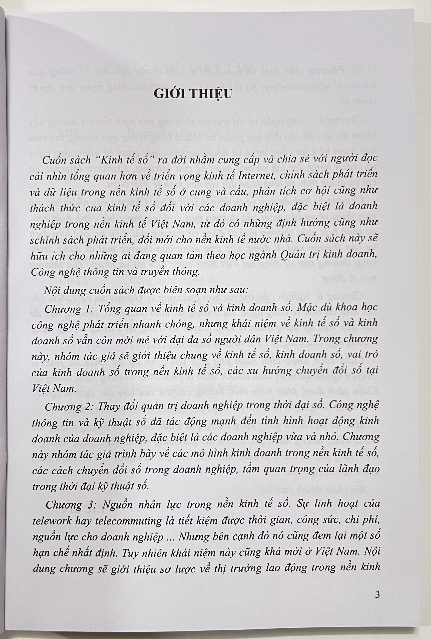 Quyển sách “Kinh tế số” ra đời nhằm cung cấp và chia sẻ với người đọc cái nhìn tổng quan hơn về triển vọng kinh tế Internet, chính sách phát triển và dữ liệu trong nền kinh tế số ở cung và cầu, phân tích cơ hội cũng như thách thức của kinh tế số đối với các doanh nghiệp, đặc biệt là doanh nghiệp trong nền kinh tế Việt Nam, từ đó có những định hướng cũng như chính sách phát triển, đổi mới cho nền kinh tế nước nhà. Cuốn sách này sẽ hữu ích cho những ai đang quan tâm theo học ngành Quản trị kinh doanh, Công nghệ thông tin và truyền thông.
