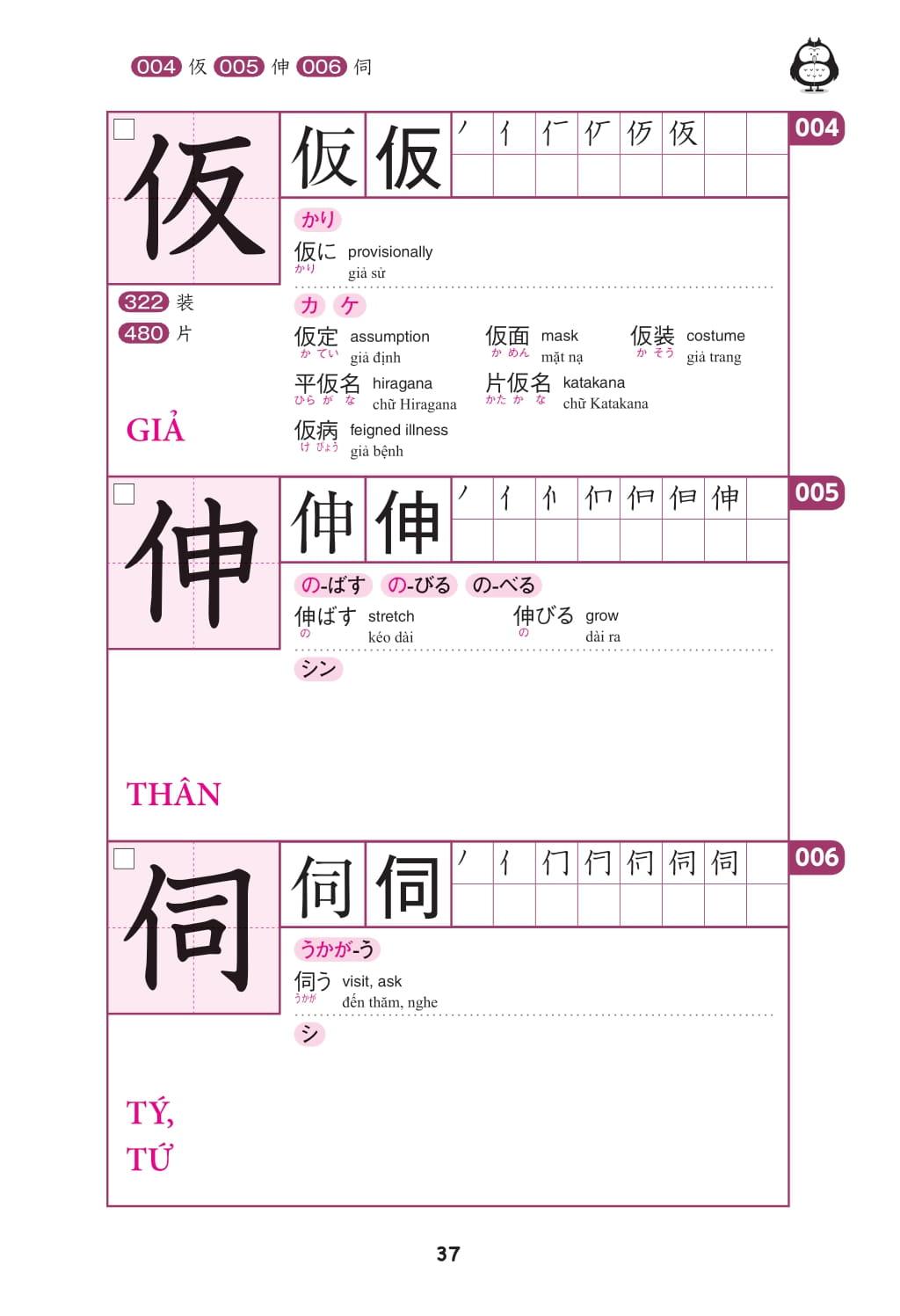 Các Hán tự được sắp xếp theo cùng một bộ chữ tương tự, giúp nhận ra sự khác biệt và hình dung ra hình dạng của mỗi chữ Hán tự hơn.