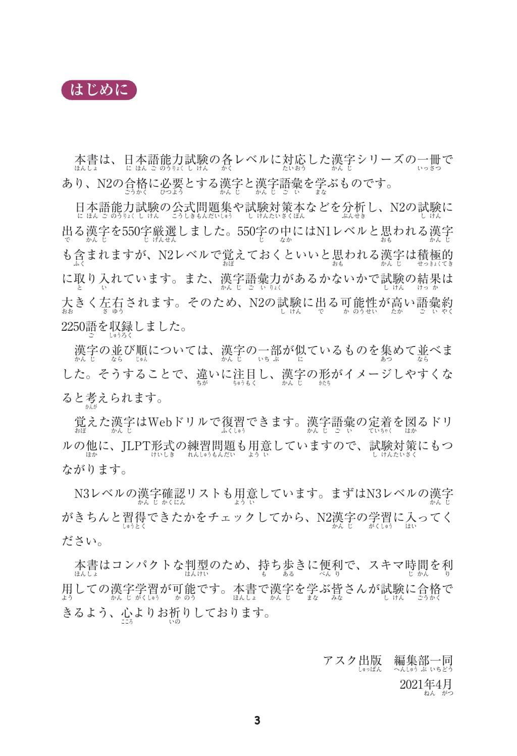 Bao gồm 550 chữ Hán tự thường được ra trong các Kỳ thi năng lực Nhật ngữ cấp độ N2. Bao gồm các đặc trưng: