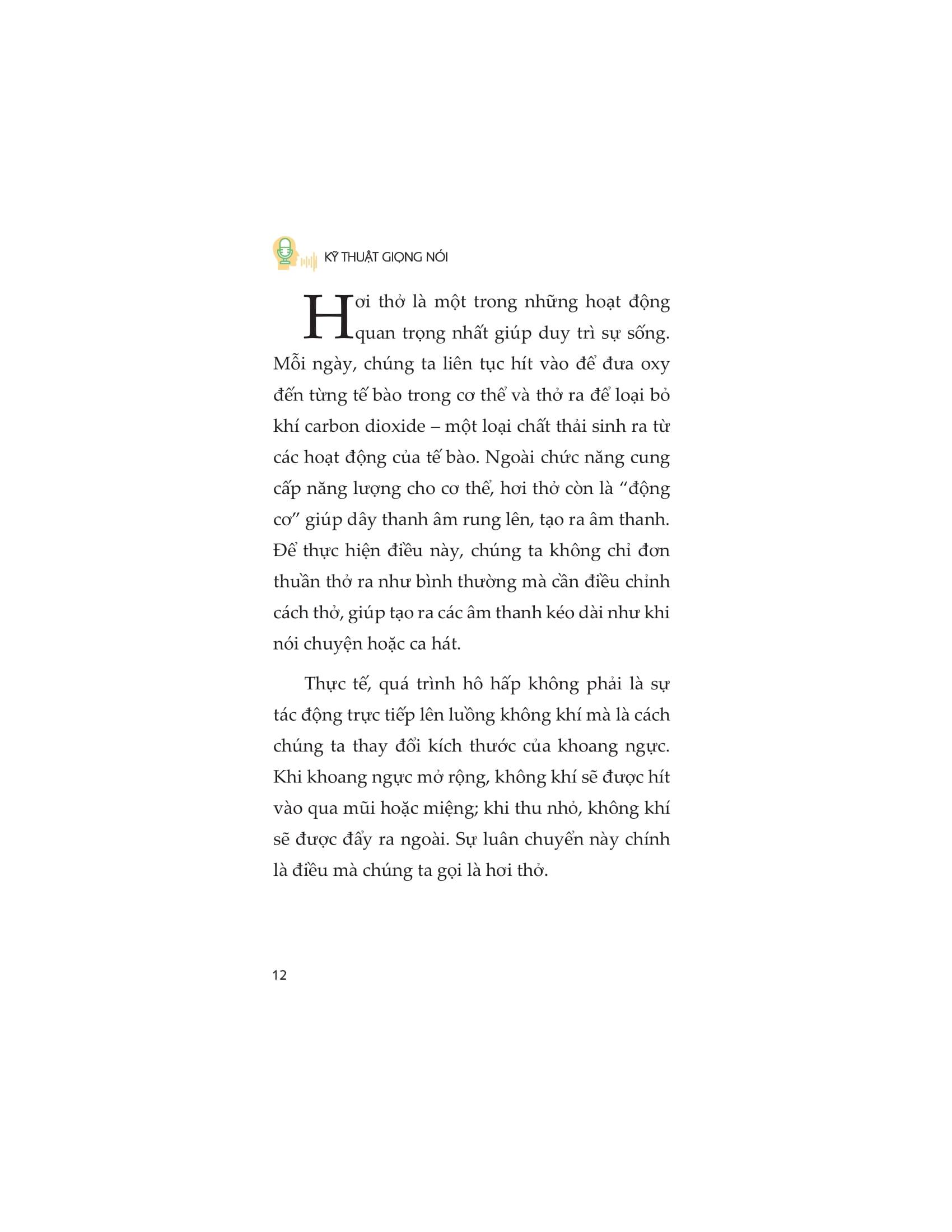 Đây là cuốn sách đầu tiên giải về giải phẫu và cơ chế của giọng nói. Được minh họa trực quan với hơn 100 hình ảnh chi tiết, “Kỹ thuật giọng nói” hướng dẫn các giáo viên, học viên thanh nhạc, ca sĩ, diễn giả, streamer, diễn viên chuyên nghiệp và bất kỳ ai muốn cải thiện giọng nói của chính m.ình tự tin, truyền cảm hơn và tạo dấu ấn cá nhân qua giọng nói.