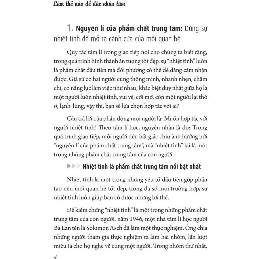 Sách: Làm Thế Nào Để Đắc Nhân Tâm Tác giả : Khâu Lệ Lệ - Bàng Kiến Xuân Dịch giả :Đỗ Thu Thủy Nhà xuất bản: nhà xuất bảnThanh Niên Kích thước : 14.5 x 20.5 cm Năm xuất bản : 2019 Số trang : 307 Khối lượng : 340 grams Bìa : bìa mềm Giới thiệu: Đắc nhân tâm là nghệ thuật thu phục lòng người, làm cho tất cả mọi người đều yêu mến mình. Vậy, làm thế nào để có thể “ đắc nhân tâm “?