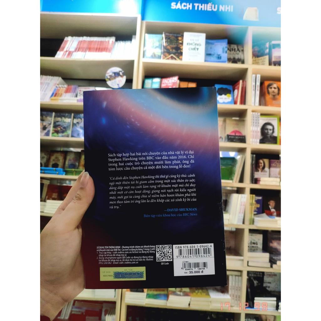 Sách tập hợp hai bài nói chuyện của nhà vật lý vĩ đại Stephen Hawking trên BBC vào đầu năm 2016. Trong loạt bài giảng trên BBC này, tác giả đã dựng lên thách đố phải tóm lược câu chuyện cả một đời bên trong lỗ đen chỉ trong hai cuộc trò chuyện mười lăm phút.