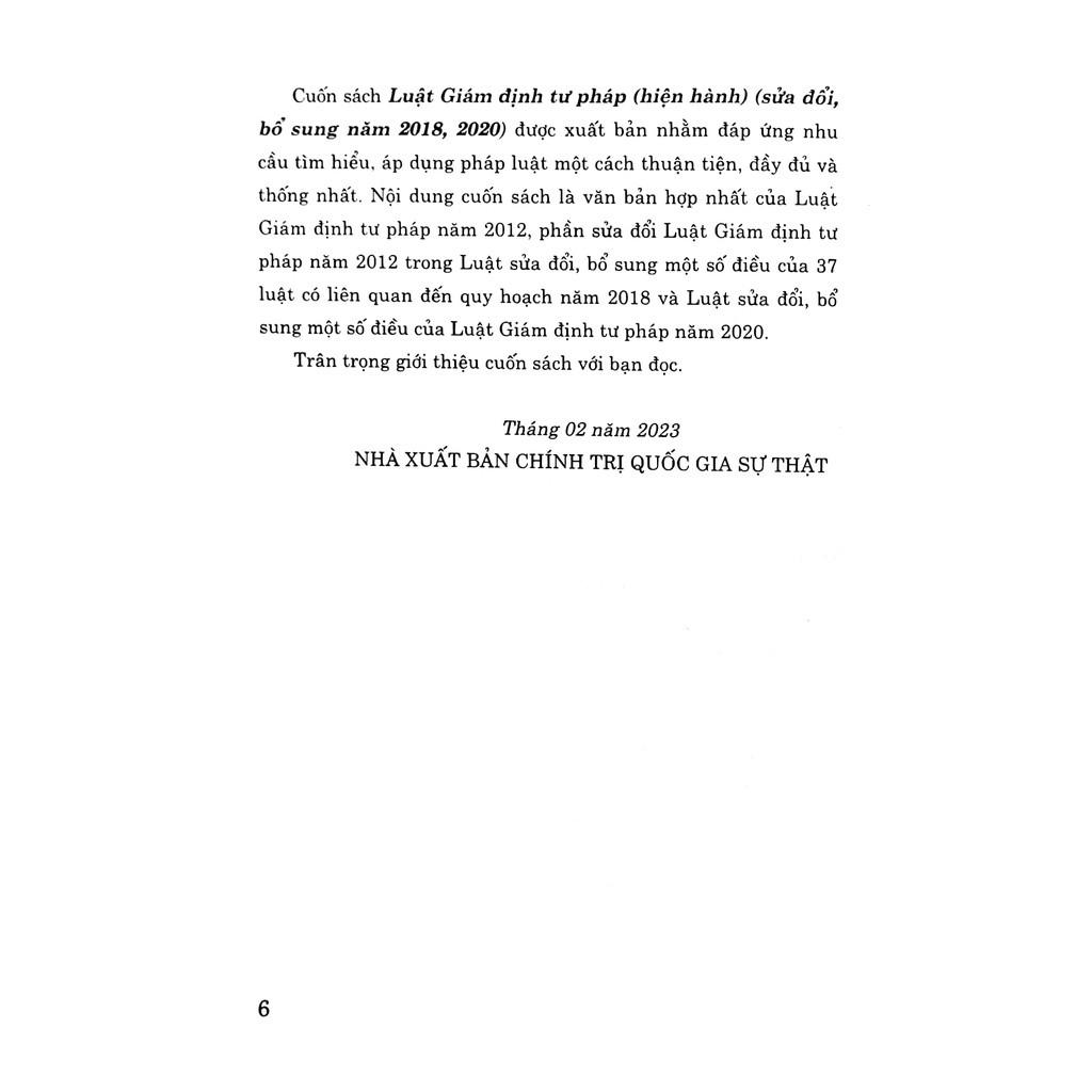 ✨Sách - Luật Giám Định Tư Pháp (Hiện Hành) (Sửa Đổi, Bổ Sung Năm 2018, 2020) - NXB Chính Trị Quốc Gia