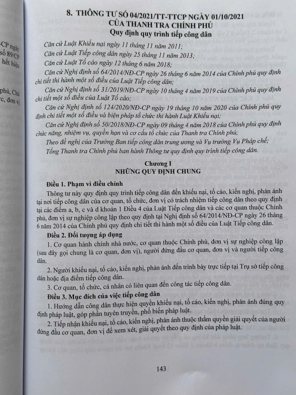 Phần thứ tư. QUY TRÌNH TIẾP CÔNG DÂN, GIẢI QUYẾT KHIẾU NẠI TỐ CÁO CỦA CÁC CẤP, CÁC NGÀNH