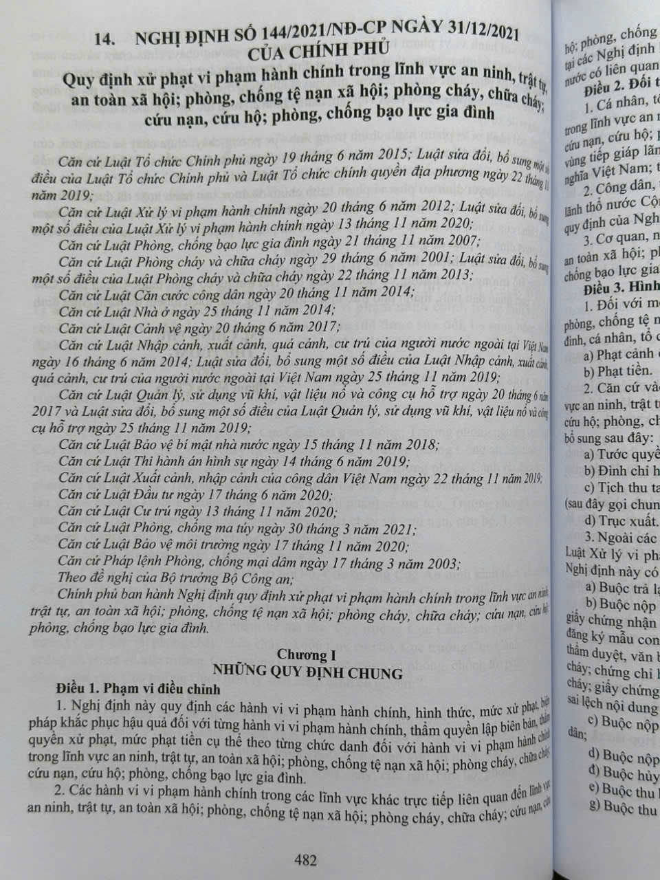 Phần thứ năm. Quy định xử phạt vi phạm hành chính trong lĩnh vực an ninh, trật tự, an toàn xã hội; phòng, chống tệ nạn xã hội; phòng cháy, chữa cháy, cứu nạn, cứu hộ; phòng, chống bạo lực gia đình; an toàn thực phẩm; văn hóa và quảng cáo