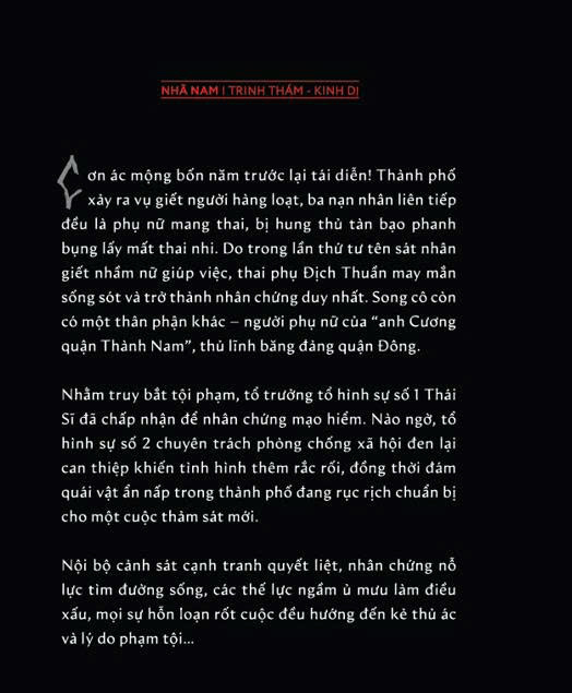 Cơn ác mộng bốn năm trước lại tái diễn! Thành phố xảy ra vụ giết người hàng loạt, ba nạn nhân liên tiếp đều là phụ nữ mang thai, bị hung thủ tàn bạo phanh bụng lấy mất thai nhi. Do trong lần thứ tư tên sát nhân giết nhầm nữ giúp việc, thai phụ Địch Thuần may mắn sống sót và trở thành nhân chứng duy nhất. Song cô còn có một thân phận khác – người phụ nữ của “anh Cương quận Thành Nam”, thủ lĩnh băng đảng quận Đông.