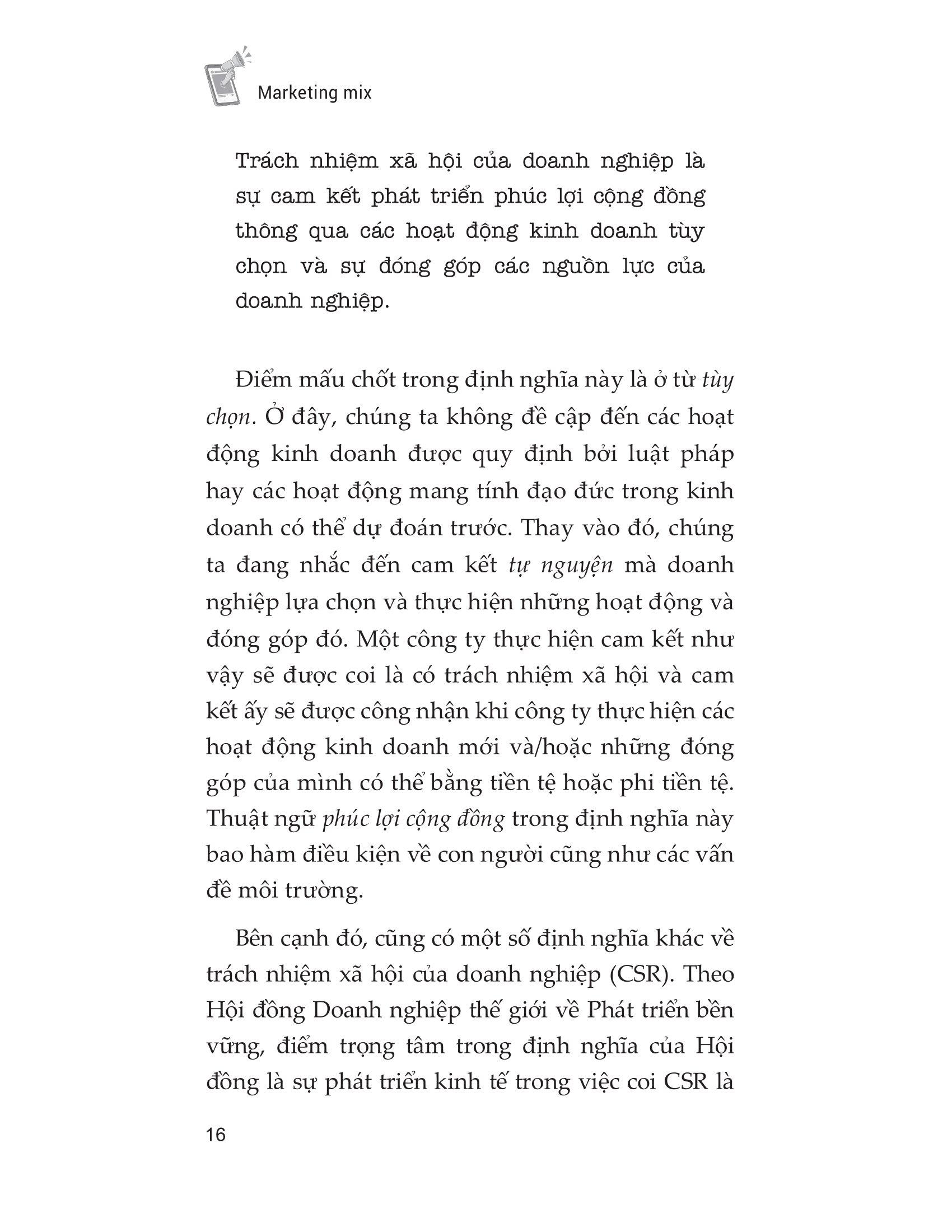 Cuốn sách Marketing mix sẽ giúp các nhà quản lí doanh nghiệp và các nhân viên có được sự chuẩn bị tốt hơn trong việc lựa chọn những vấn đề phù hợp nhất, những đối tác tốt nhất, và những chiến lược marketing hiệu quả nhất, giúp tối đa hóa lợi nhuận của doanh nghiệp đồng thời thực hiện tốt nhất các vấn đề về môi trường, kinh tế và xã hội. Môi trường kinh doanh ngày càng có nhiều biến động và khác biệt, chính vì vậy, các doanh nghiệp luôn cần trong trạng thái sẵn sàng đối mặt cũng như có chiến lược dự phòng để thích ứng kịp thời. Bằng cách áp dụng các mô hình này, doanh nghiệp có thể hiểu rõ về thị trường, khách hàng mục tiêu cũng như đối thủ cạnh tranh để từ đó có thể đưa ra những chiến lược, cũng như các quyết định quan trọng. Với cuốn sách này, bạn sẽ học hỏi được những bài học sâu sắc và đó chính là chìa khóa giúp bạn đạt được thành công.