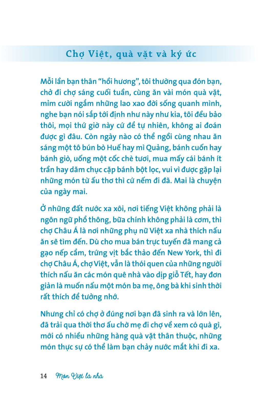 Nhà là nơi mở cửa ra ban công thấy mấy bông nhài đã nở lại nhớ đến những bình nước thơm mẹ thả vài bông, nhớ bát chè thoang thoảng hương đặt lên thành kính cảm tạ các cụ đã phù hộ cho con cháu chân cứng đá mềm. Nhà luôn là nơi bình yên, có bếp và các món Việt khi cả nhà quây quần trong yêu thương. Mà món nào được nấu bằng yêu thương, món ấy sẽ tỏa hương vị không thể nào quên. Để lớn lên, già đi, có ai không cần ăn và cần được yêu thương? Không phải ngẫu nhiên, mà khi Đen Vâu hát, đường về nhà là vào tim ta, đã lập tức có nhiều chục triệu người like. Nhà vẫn luôn là nhà, với các món Việt thơm thảo từ ký ức. Với hàng triệu người Việt, món Việt là Nhà.