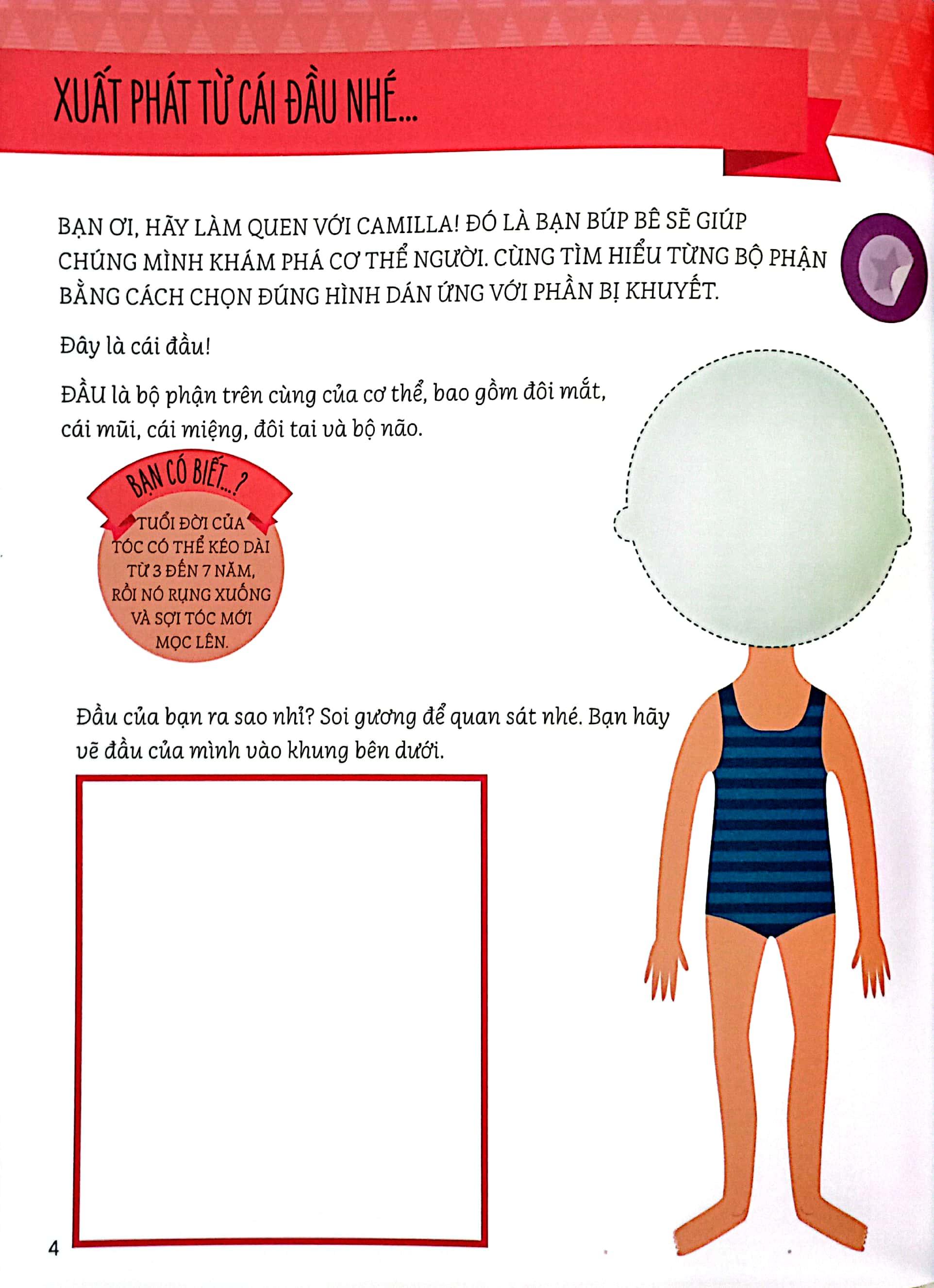 Tất cả hoạt động trong cuốn sách này tạo điều kiện thuận lợi cho quá trình học hỏi thông tin kĩ thuật về cơ thể con người, phát triển vốn từ vựng qua việc dạy tên gọi của các cơ quan (nội tạng), đồng thời xây dựng nhận thức cao hơn về cơ thể - nhờ nhấn mạnh những đặc điểm chính, sự khác biệt, và chức năng của từng bộ phận theo cách dễ hiểu, thú vị. Cuốn sách đầu tiên về Cơ thể dành cho trẻ, phù hợp với các bạn ở độ tuổi 5+, hé mở “bí mật” về cơ thể, bao gồm những trò chơi phong phủ liên quan đến cấu trúc cơ thể, ở góc nhìn từ phía trước và từ đầu xuống chân.
