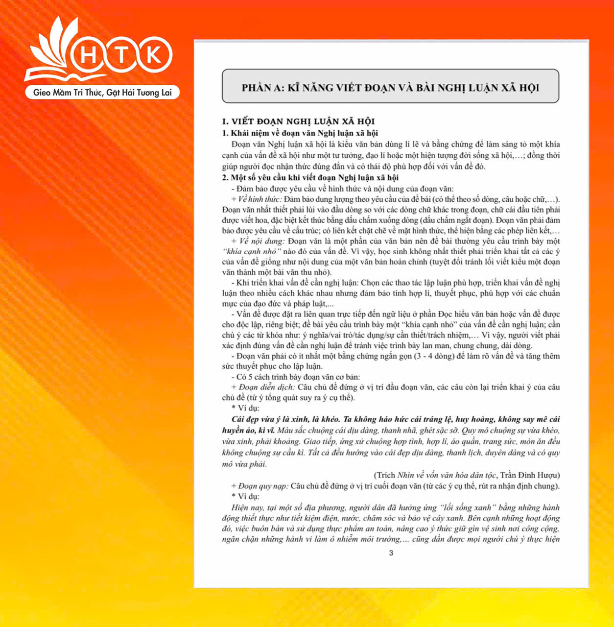 Sách giúp các em học sinh tiếp cận kiến thức lí thuyết phần làm văn ngắn gọn, dễ hiểu; đọc hiểu tác phẩm theo đặc trưng thể loại, phát triển năng lực sáng tạo trong văn chương. Hơn nữa, sách còn tập trung vào hướng dẫn các kĩ năng tiếp cận, xử lí các dạng đề cụ thể của từng kiểu bài nghị luận xã hội và nghị luận văn học. Ngoài ra, các em còn được tham khảo các bài viết mẫu giúp rèn kĩ năng đọc để mở rộng vốn từ, nâng cao khả năng diễn đạt ngôn ngữ.