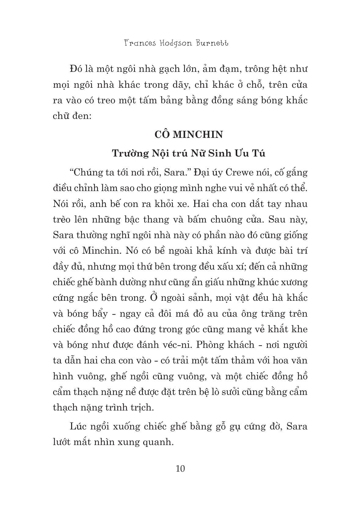 Một ngày đông ảm đạm nọ, màn sương dày vàng ệch nặng nề bao trùm khắp các nẻo đường London. Phố xá phải lên đèn giữa ban ngày và những ô kính ở các cửa hàng cũng được thắp đèn ga sáng rực như thể đã tối trời, có một cô bé nom thật lạ lùng ngồi cùng cha trong một cỗ xe ngựa đương chậm rãi lăn bánh qua những con phố lớn