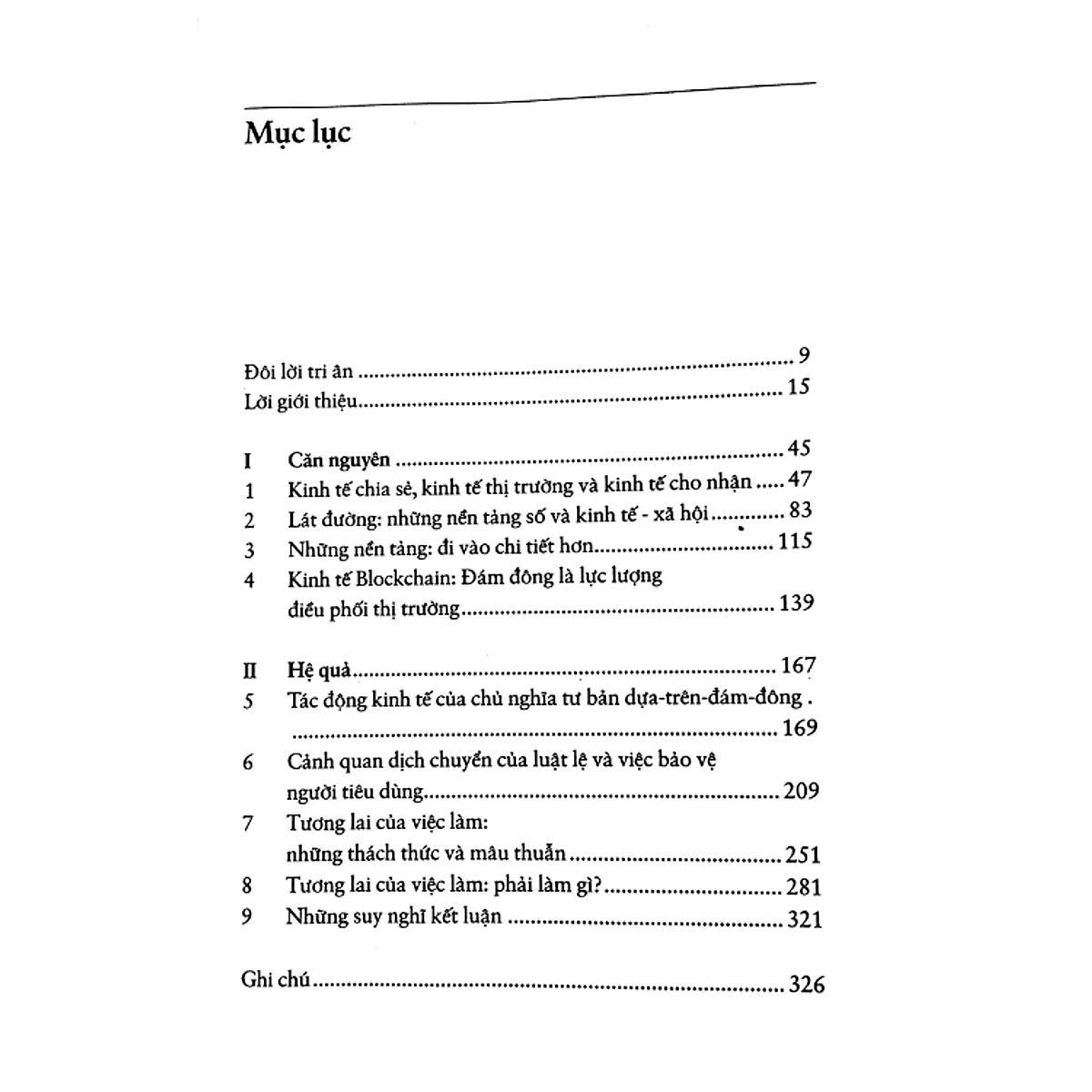 Dựa vào những nghiên cứu có chiều sâu và nhiều ví dụ từ thế giới thực - bao gồm Airbnb, Lyft, Uber, Etsy, TaskRabbit, BlaBlaCar của Pháp, Didi Kuaidi của Trung Quốc, Ola của Ấn Độ, Sundararajan giải thích được những căn bản của chủ nghĩa tư bản dựa trên đám đông. Ông mô tả sự pha trộn lý thú giữa “quà tặng” và “thị trường” trong quá trình chuyển hóa của chúng, làm sáng tỏ những công nghệ chuỗi khối đang xuất hiện, và phân loại những nền tảng theo-yêu-cầu đang gia tăng chóng mặt. Ông bàn luận về việc hình thái mới này sẽ làm thay đổi sự tăng trưởng kinh tế và tương lai của việc làm ra sao.