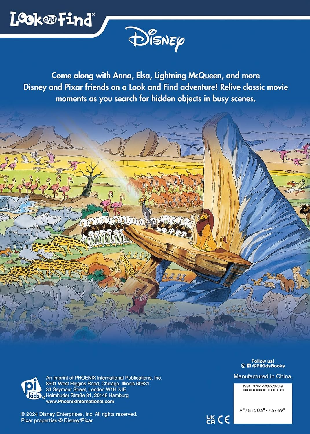 Come along with Anna, Elsa, Lightning McQueen, and more and Pixar friends on a Look and Find adventure! Relive classic movie moments as you search for hidden objects in busy scenes. Includes 40 stickers!