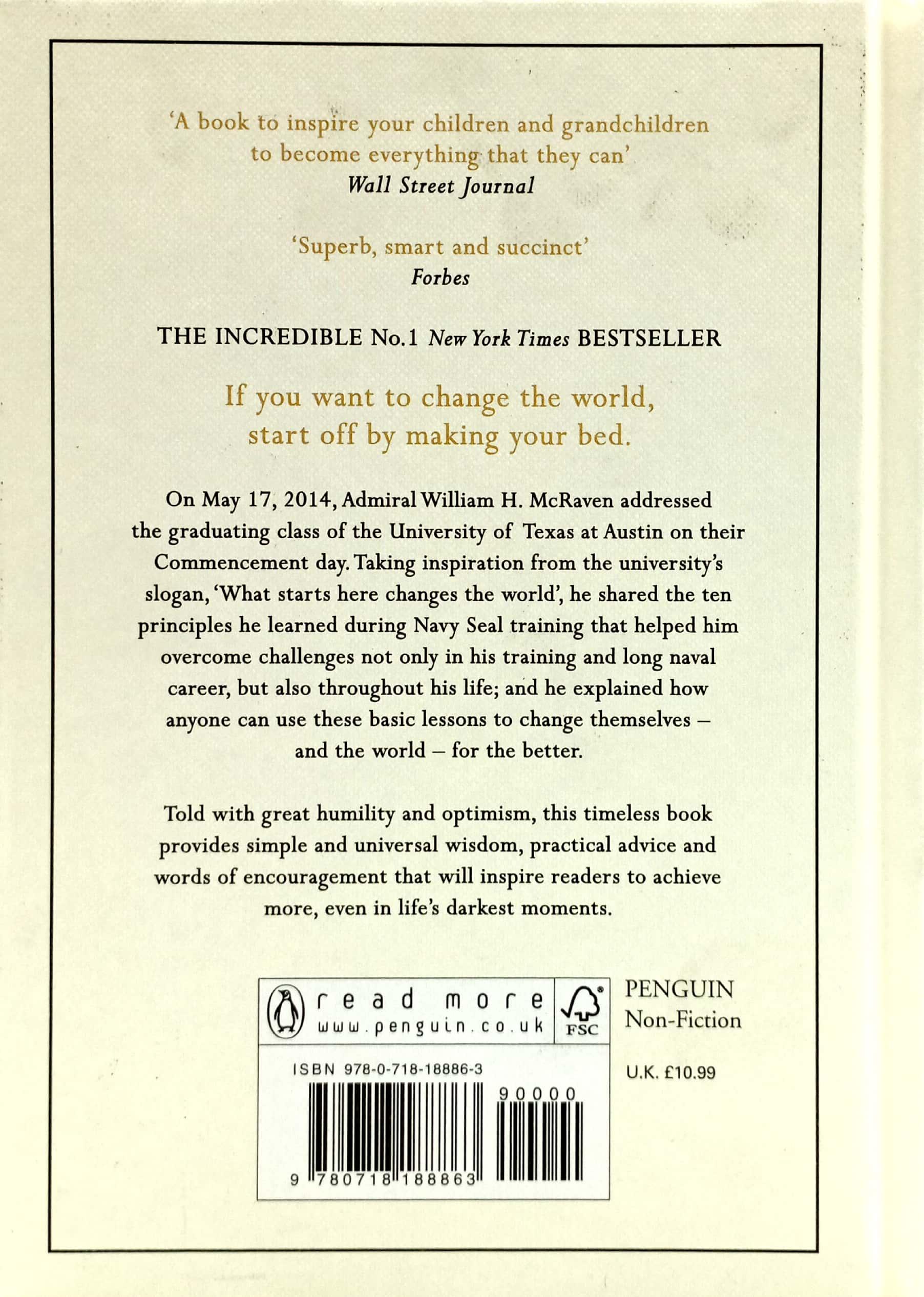 In Make Your Bed, Admiral William H. McRaven shares 10 life lessons he learned during his Navy Seal training that helped him overcome challenges not only in his long Naval career, but also throughout his life.