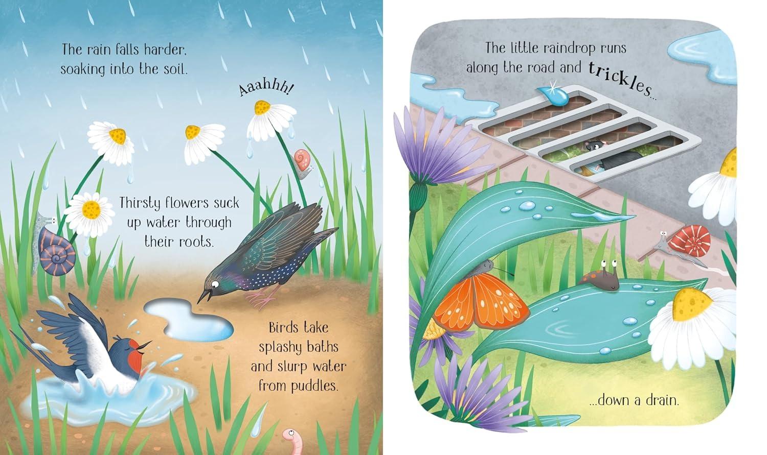 One Little Raindrop One little raindrop falls from the sky... Follow its incredible journey until it finally reaches the sea, where it evaporates to become part of a cloud and begin the cycle all over