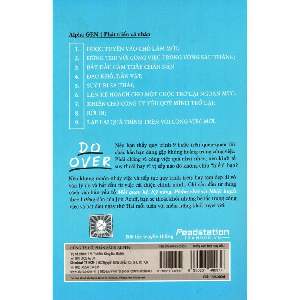 - Lặp lại quá trình trên với công việc mới; Nếu bạn thấy quy trình 9 bước trên quen-quen thì chắc hẳn bạn đang gặp khủng hoảng trong công việc. Phải chăng vì công việc quá nhạt nhẽo, nền kinh tế suy thoái hay vì vị sếp nào đó không chịu “hiểu” bạn? Nếu không muốn nhảy việc và tiếp tục quy trình trên, hãy tạm dẹp đi vô vàn lý do và bắt đầu từ việc cải thiện chính mình. Chỉ cần đầu tư đúng cách vào bốn yếu Mối quan hệ, Kỹ năng, Phẩm chất và Nhiệt huyết theo hướng dẫn của Jon Acuff, bạn sẽ thoát khỏi những bế tắc trong công việc và bắt đầu ngày thứ Hai mỗi tuần với niềm hứng khởi tuyệt vời. Công ty phát hànhtAlphabooks Tác giảtJon Acuff Ngày xuất bảnt11-2017 Kích thướct 14 x 20.5 cm Nhà xuất bảntNhà Xuất Bản Lao Động Xã Hội Dịch GiảtThảo Nguyên, Kim Ngân Loại bìatBìa mềm Số trangt386 Gooda tin rằng cuốn sách sẽ mang lại kiến thức thật bổ ích cùng những trải nghiệm thật tuyệt vời, hy vọng đây sẽ là 1 cuốn sách quý trên kệ sách của bạn! QUYỀN LỢI KHÁCH HÀNG KHI MUA SÁCH TẠI SHOP GOODA THƯ VIỆN SÁCH QUÝ: