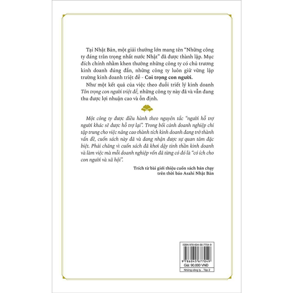 Tại Nhật Bản, một giải thưởng lớn mang tên “Những công ty đáng trân trọng nhất nước Nhật” đã được thành lập. Mục đích chính nhằm khen thưởng những công ty có chủ trương kinh doanh đúng đắn, những công ty luôn giữ vững lập trường kinh doanh triệt để - Coi trọng con người. Trong cuốn sách này tác giả Kouji Sakamoto giới thiệu đến độc giả 8 công ty với 8 lĩnh vực, 8 mô hình kinh doanh khác nhau nhưng tất cả đều có chung một triết lý kinh doanh là “Lấy con người làm gốc, đặt con người làm trung tâm”. Như một kết quả của việc theo đuổi triết lý kinh doanh “Tôn trọng con người triệt để”, những công ty này đã và vẫn đang thu được lợi nhuận cao và ổn định.